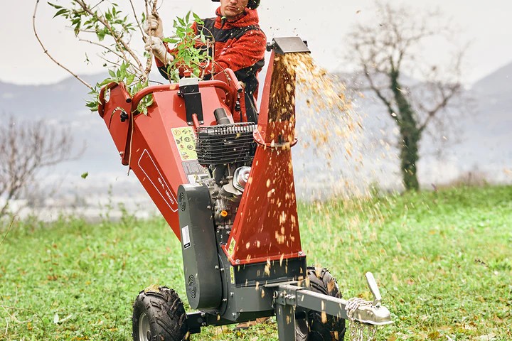 Bluebird SHL 1200 Chipper. With its large-displacement, 420cc, Loncin four-stroke engine outputting a tremendous 15hp, and driving a high-performance drum-and-blade-type cutting system tackling vegetation up to 4" thick, the hardworking and impressively productive Bluebird SHL 1200 Wood Chipper will take whatever the professional gardener can throw at it!